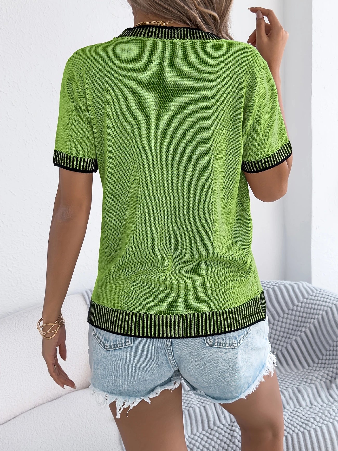 ✅Diseño elegante y versátil: El cuello redondo combinado con los detalles de punto a rayas ofrece un estilo refinado y moderno. Combina fácilmente con outfits informales, semiformales y relajados para el fin de semana. Este top realza tu armario con un atractivo atemporal.